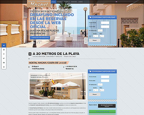 Web del Hostal Macavi en Rota, Cádiz, a escasos metros de la estupenda Playa de la Costilla. Reservas online para clientes.