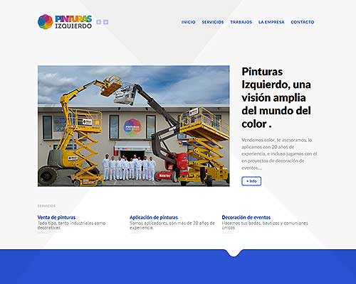 Sitio web corporativo de la empresa Pinturas Izquierdo. Se didican a la venta y aplicación de pinturas así como trabajos verticales y reparación de fachadas. También a decoración de eventos.